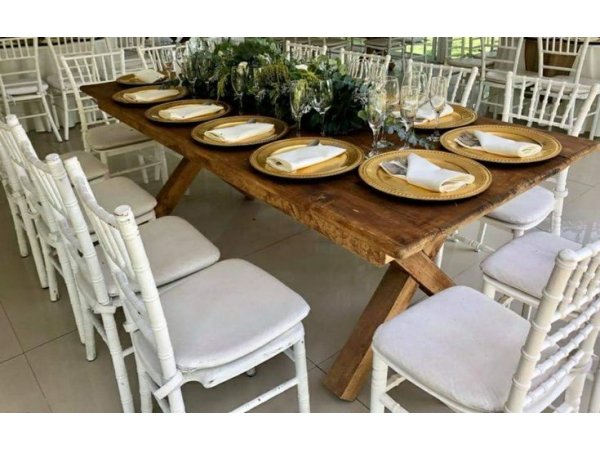 Lúcete en tu evento con nuestro mobiliario rústico: mesa y sillas elegantes. Una combinación perfecta que aporta estilo, calidez y sofisticación a cualquier ocasión.